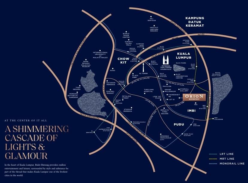 Orion Residence is nestled in the bustling heart of Kuala Lumpur, providing residents with immediate access to the city's major business hubs and corporate offices.